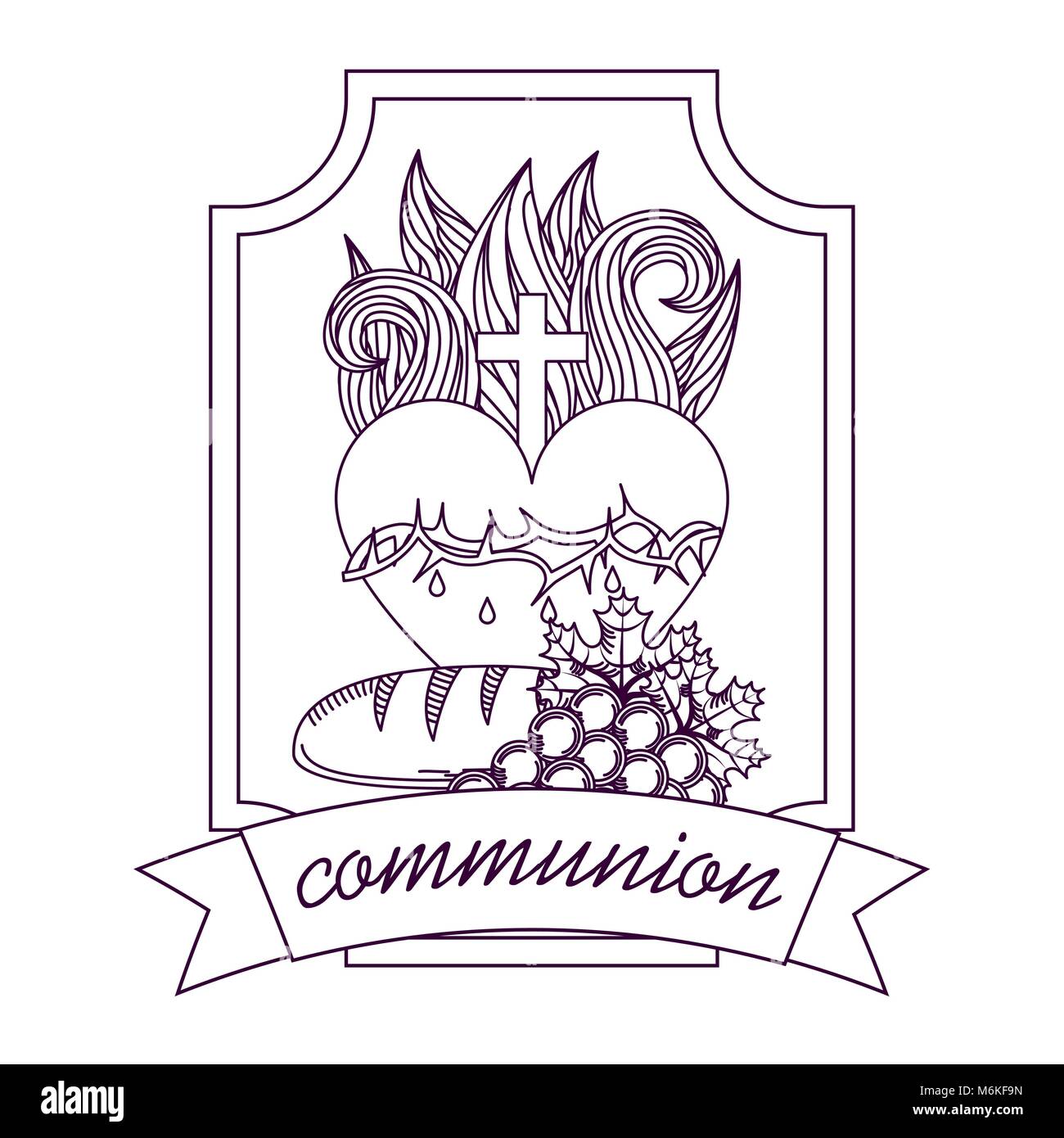 Sacred Heart Of Jesus Communion Bread And Grape Hand Drawing Label